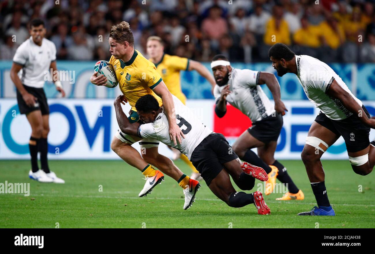 Rugby Union Rugby World Cup 2019 Pool D Australia V Fiji Sapporo Dome Sapporo Japan September 21 2019 Australia S Michael Hooper In Action With Fiji S Frank Lomani Reuters Edgar Su Stock Photo Alamy
